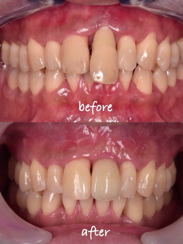 歯周治療を行ったうえでインプラント治療とGBR(骨造成)を実施した症例です。